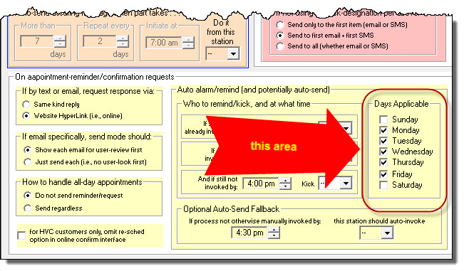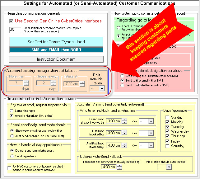 As it's captioning implies, this section is all about elements of setup that involve sending appointment-reminder/confirmation-requests. For detailed consideration, we want to first focus on this sub-section: