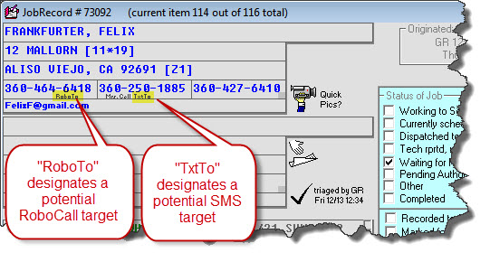 Please decide what strategy is best for your circumstances, and set accordingly. Then, please further assure all your office personnel know how they must proceed in setting up JobRecord contents, so as to assure ServiceDesk is able to accurately deduce what telephone numbers area appropriate targets for SMS texting, which for RoboCalling, and which email or emails are appropriate for emailing via automated communication.